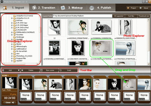 Step two: Add dynamic effects to still images. E.M. Swf Photo Slideshow provides array of transition styles from family to new HD style.